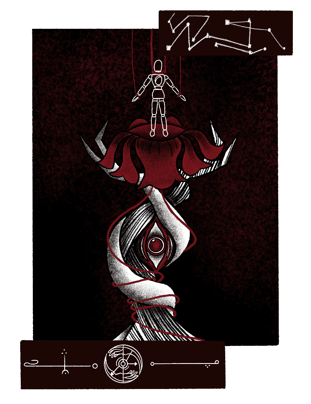 However, the entwined tree forms the gesture of someone praying. And the large eye? Yes, that eye… I feel it has returned, watching me as if stripping me bare, telling me that I am the cause of all these bad things.